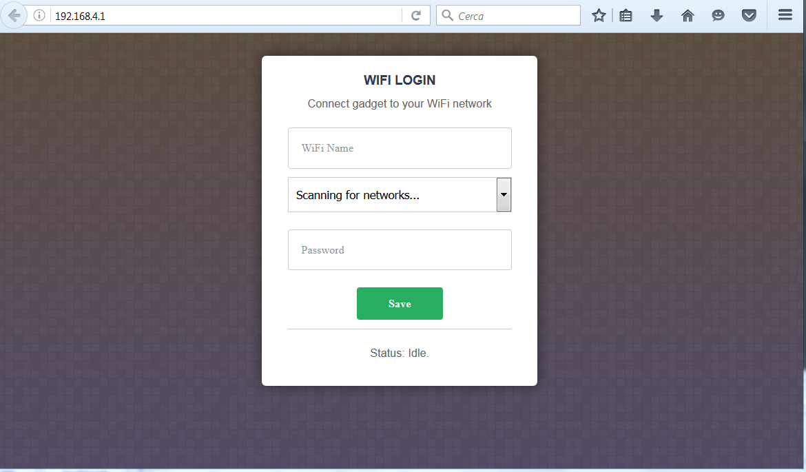 Provvediamo a collegarci a tale Access Point e mediante browser accediamo al portale, definito in genere all’indirizzo 192.168.4.1