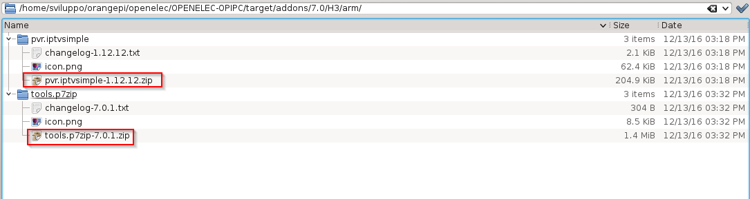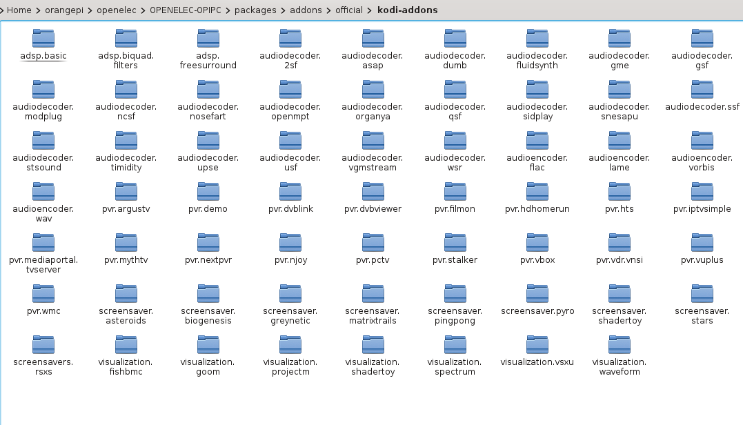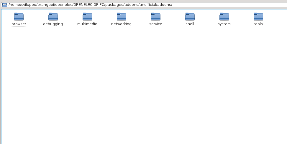 Accedendo con l’interfaccia grafica su Debian nella cartella packages si può verificare che gli addon official sono presenti. Per aggiungere quelli non ufficiali eseguire da OPENELEC-OPIPC
