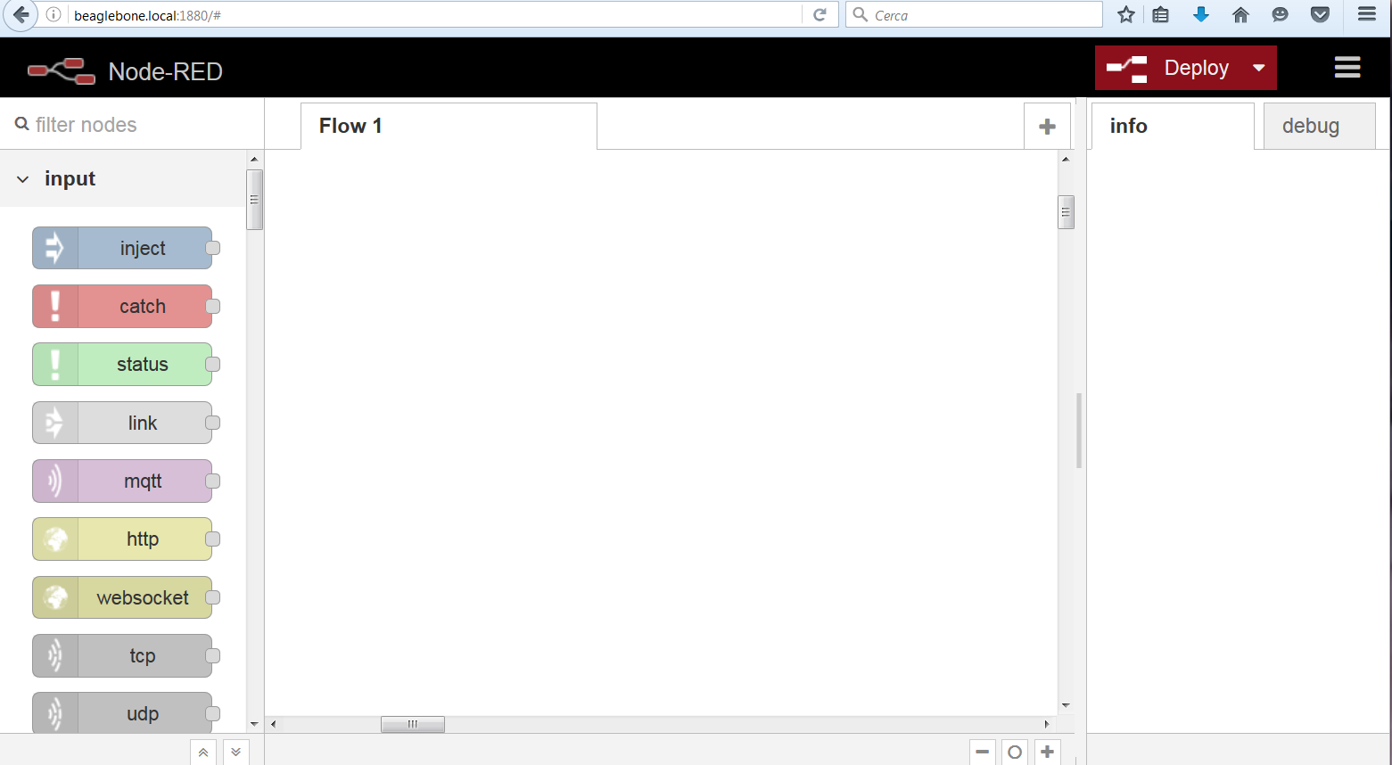 e poter accedere direttamente all’ide del framework, presente sulla porta 1880 del web server funzionante sul Beaglebone