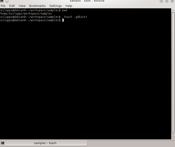 impostazioni debug serverCreare il file .gdbinit nella cartella del progetto con il comando