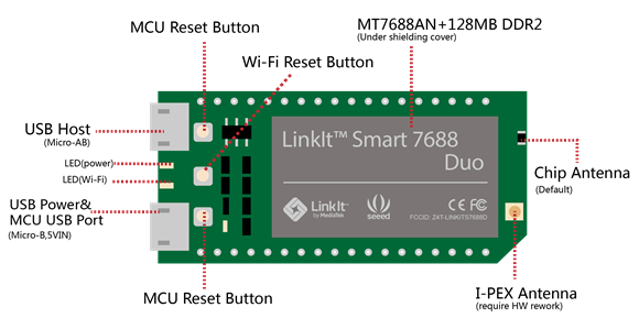 Le due schede condividono lo stesso Microprocessore (MPU MT7688AN), ma nel caso del Linkit 7688 Duo questo è coadiuvato dal Microcontroller Atmel (MCU ATmega32U4) per la gestione delle periferiche.