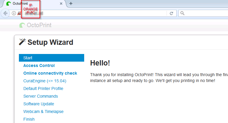 Il server OctoPrint è raggiungibile sulla porta 5000 all’indirizzo ip del Orange PI PC